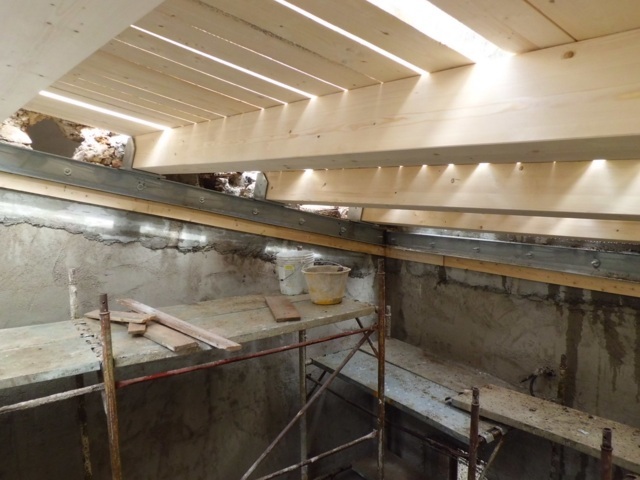 L’analisi dello stato di danno e delle vulnerabilità dell’edificio hanno evidenziato sia la necessità di effettuare il ripristino e il consolidamento superficiale delle murature sia l’esigenza di realizzare una nuova copertura in legno lamellare tenendo conto della regola dell’arte.