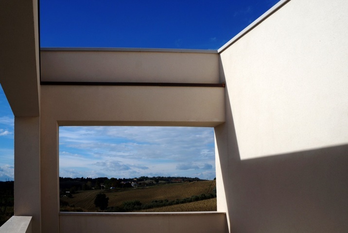 Si tratta di un’architettura moderna e lineare, dalla geometria pulita e rigorosa, in cui grande importanza rivestono la percezione del paesaggio circostante e la fruizione degli spazi esterni.