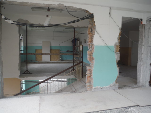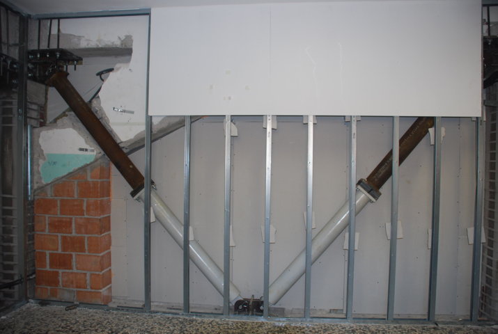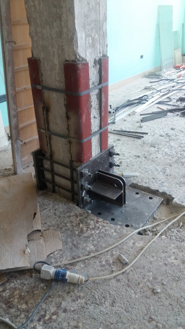 L’adeguamento sismico della struttura è stato ottenuto tramite l’inserimento di controventi dissipativi di tipo BRAD. Inoltre sono stati rinfornzati i pilastri tramite una fasciatura in fibra di basalto, materiale che non necessita di alcun rivestimento ignifugo.