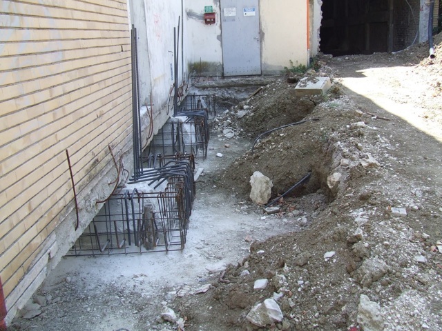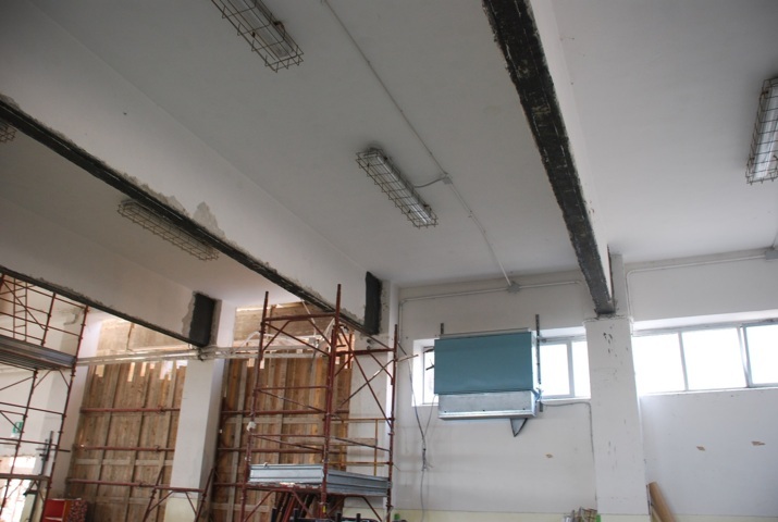 Per la realizzazione dei giunti sismici tra i vari plessi è stato necessario demolire e ricostruire alcuni pilastri ed i relativi cordoli di collegamento al livello dei solai.