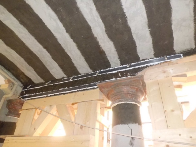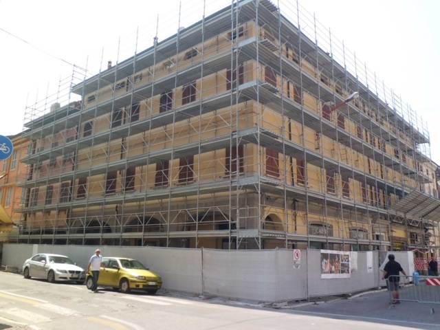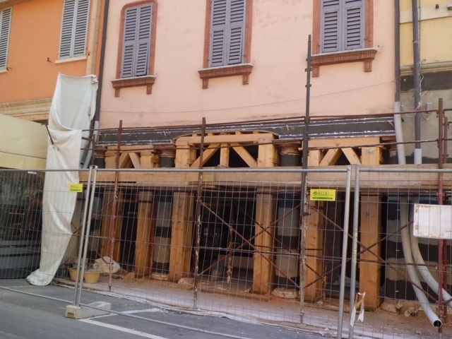 Il progetto riguarda la riparazione delle lesioni conseguenti gli eventi sismici che hanno colpito la regione nel 2012, e rafforzamenti locali finalizzati ad attenuare le vulnerabilità intrinseche dell’edificio. Le carenze locali sono state eliminate attraverso interventi di cerchiatura delle murature perimetrali mediante fasce in fibra di carbonio, e la realizzazione di solette collaboranti in c.a. in grado di aumentare la resistenza, la rigidezza e la portanza dei solai, e di consentire una corretta trasmissione e ripartizione delle azioni sismiche alle pareti. Sono state inoltre ripristinate la rigidezza di alcuni pannelli murari attraverso delle cerchiature in acciaio, e la continuità tra gli elementi di collegamento verticali con gli orizzontamenti e le strutture portanti verticali.