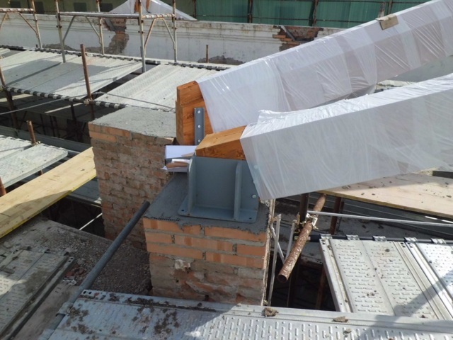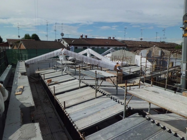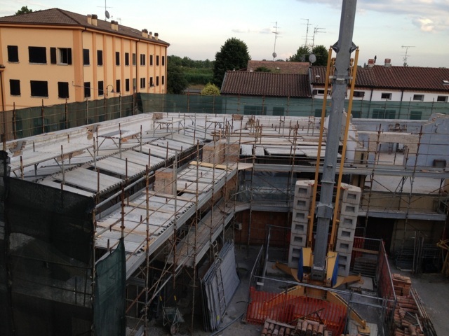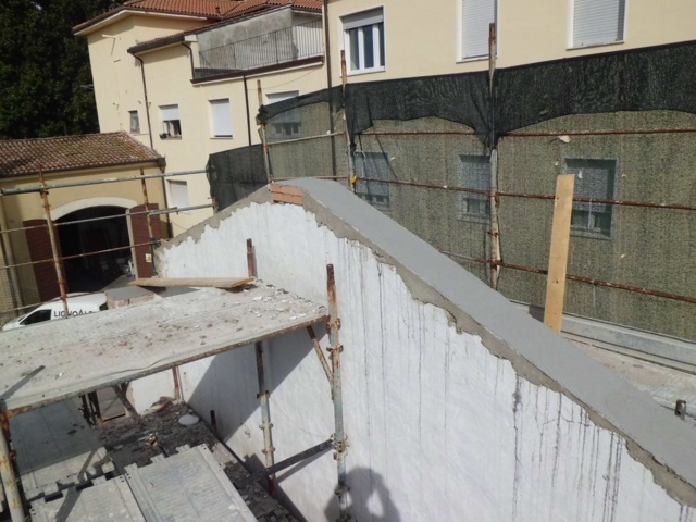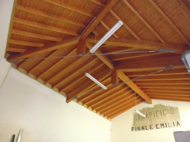 Gli intervento prevedono la realizzazione di una nuova copertura in legno lamellare di tipo non spingente, la riparazione delle lesioni attraverso il metodo “cuci- scuci” e cuciture armate, la sostituzione delle tamponature esterne danneggiate con nuove tamponature in legno, la fasciatura dei pilastri con rete in fibra di vetro, l’applicazione rete in fibra di vetro sulle pareti esterne, la realizzazione di un cordolo sommitale in fibra di acciaio, e il rinforzo dei solai di interpiano esistenti con soletta collaborante.