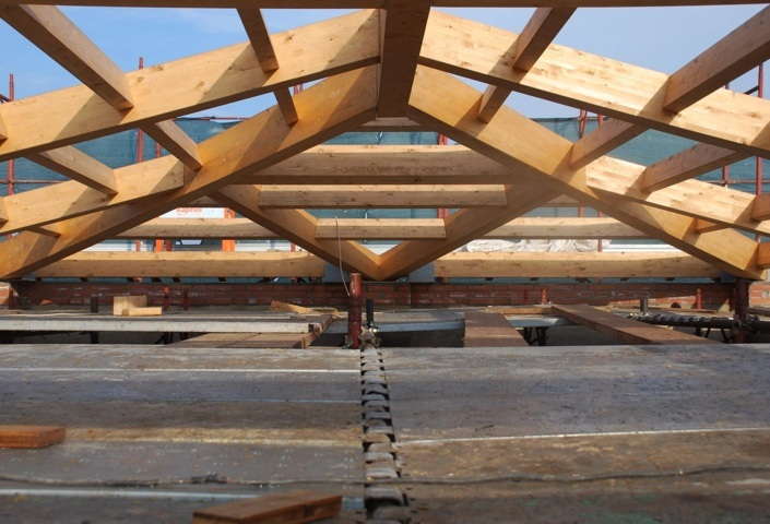 Gli interventi proposti per il recupero dell’edificio riguardano il rinforzo degli elementi verticali ed orizzontali e la sostituzione della copertura con una nuova di tipo non spingente il legno lamellare.
